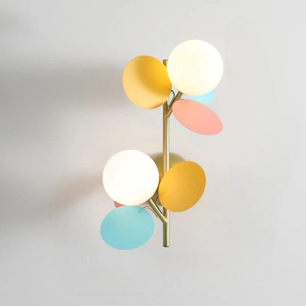 Cette applique murale n’est pas seulement jolie, elle est aussi pensée pour diffuser une lumière agréable. L’ampoule globe centrale est entourée de formes colorées (rose, jaune, bleu) qui adoucissent la luminosité. Résultat : une lumière tamisée idéale pour créer une atmosphère relaxante, sans jamais être agressive pour les yeux. Parfaite pour les fins de journée où l’on veut juste se détendre.